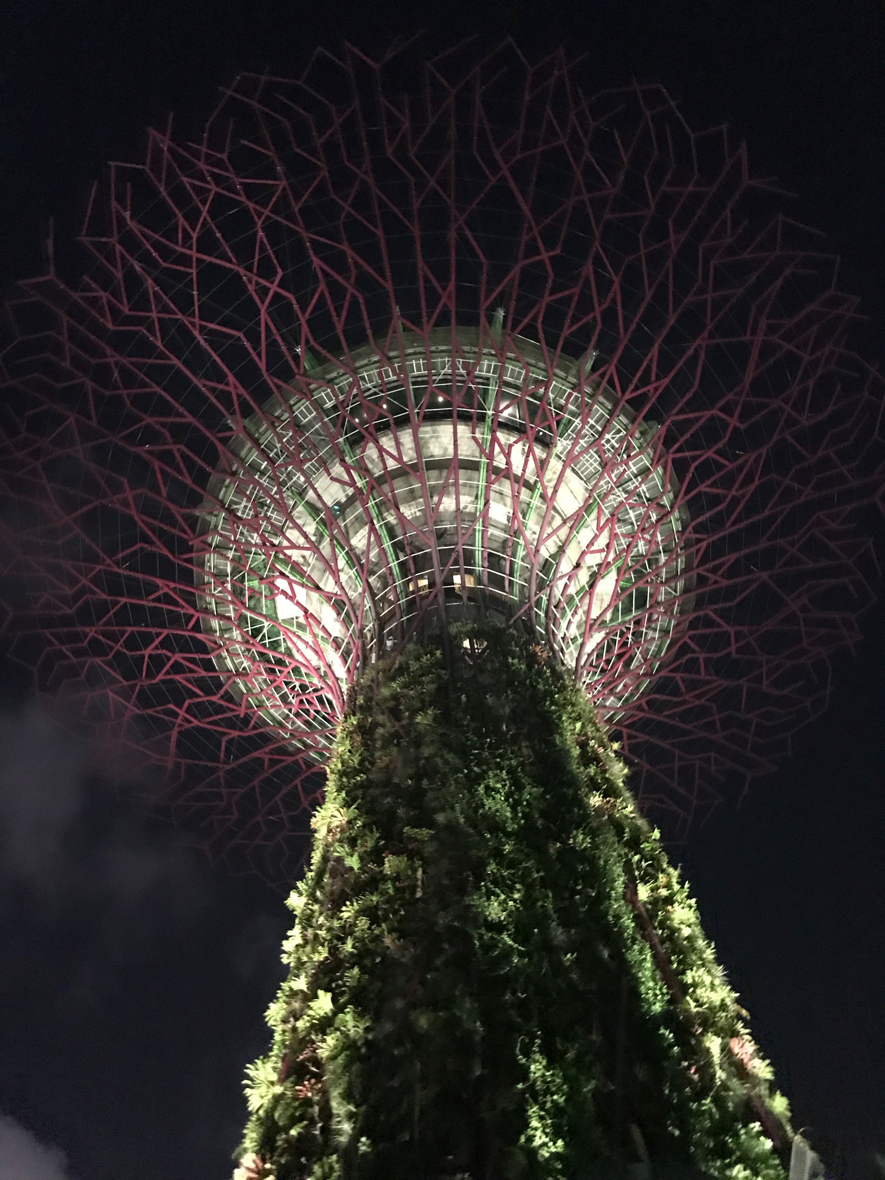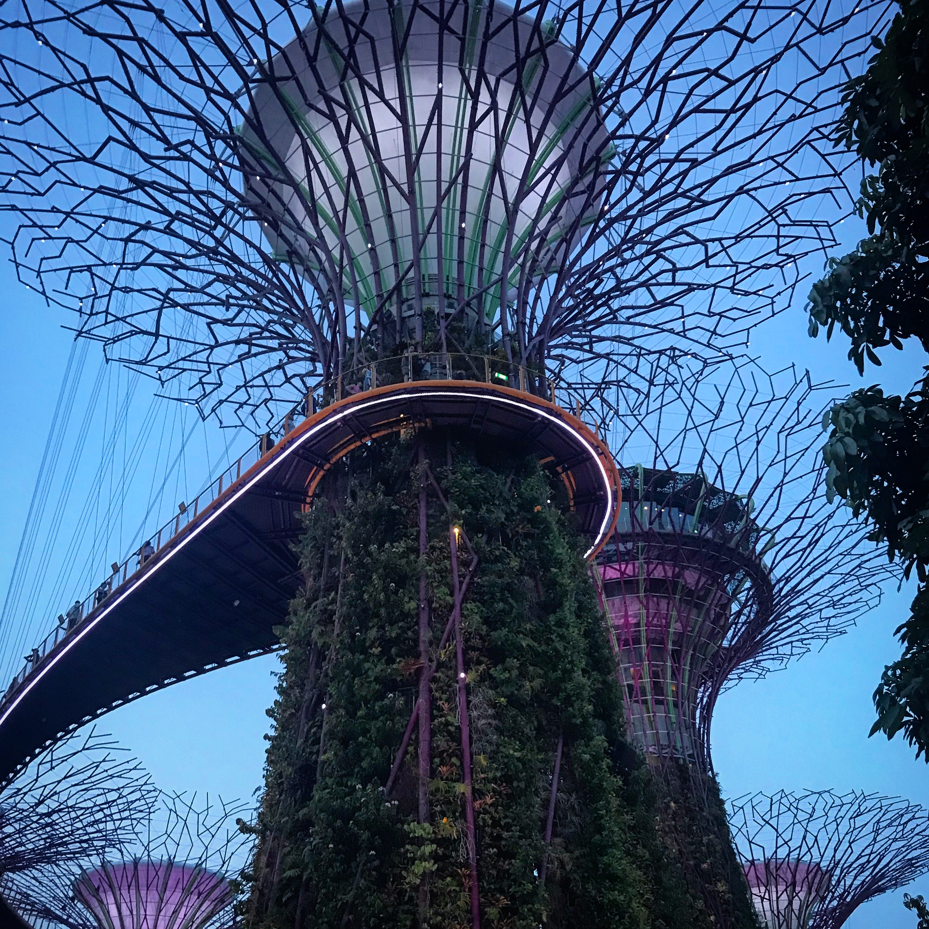 These are the Singaporean Supertrees, located in the famous Gardens by the Bay. Tourists come here from far and wide to see these trees, and walk the surrounding gardens and greenhouses. There’s a whole promenode, and two famous bio-domes to explore, the Flower Dome and the Cloud Forest.